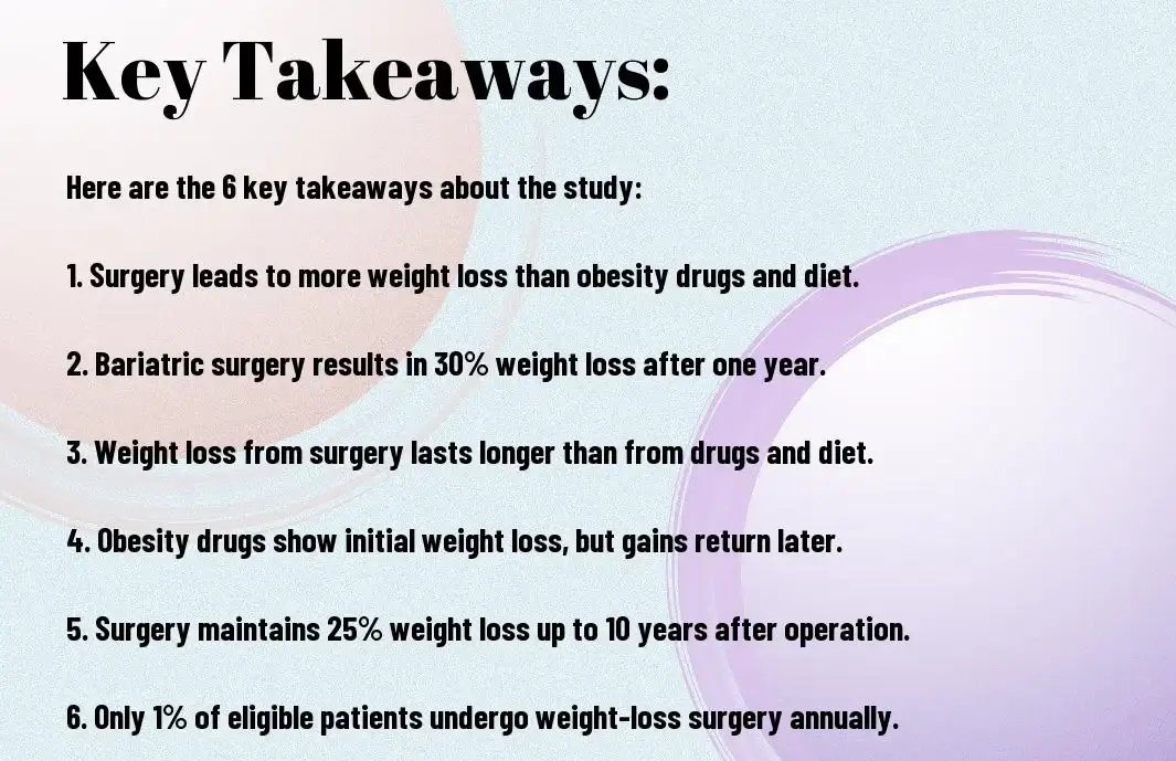 If you’re struggling with obesity, you’re not alone – over 42% of Americans are affected by this serious condition that can lead to chronic inflammation, cardiovascular disease, stroke, Type 2 diabetes, and certain cancers. While diet and exercise may seem like the obvious solution, a new study reveals that weight loss surgery is significantly more effective in achieving long-term weight loss compared to obesity drugs and lifestyle changes. Researchers found that surgery resulted in a 30% weight loss one year after the operation, with patients maintaining a 25% weight loss up to 10 years after surgery. This is in stark contrast to obesity drugs, which led to weight loss that was often regained within a year. As you consider your options for tackling obesity, it’s necessary to understand the benefits and drawbacks of each approach.